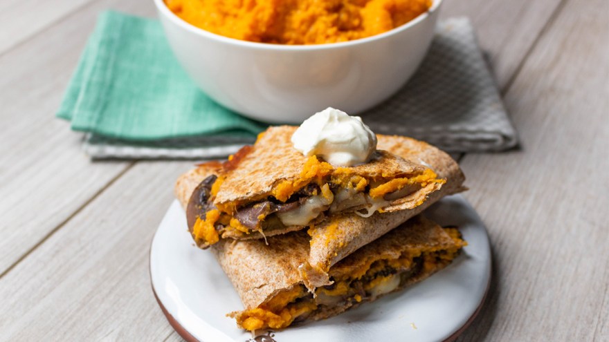 Sweet potatoes may not be a common quesadilla ingredient, but this puree — combined with black beans, mushrooms and jalapeño pepper slices — results in a delicious medley that gives your taste buds a little heat and sweet.