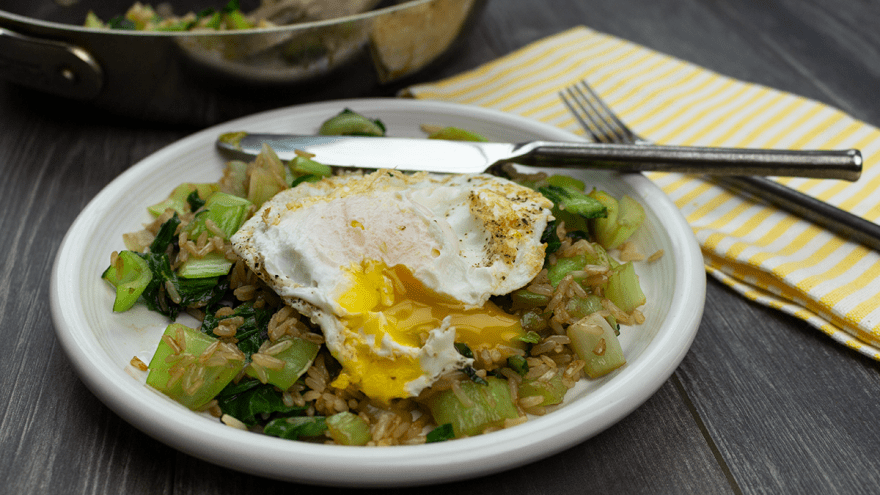Vegetables are my favorite thing to eat for breakfast after my morning workout, and I love making fast meals like this one to fuel up for the day. Bok choy has a light and refreshing taste with leaves similar to spinach and stems like a cross between cabbage and iceberg lettuce. This superfood is super delicious and tastes excellent with brown rice, Asian flavors and fried eggs. Move over cereal, breakfast just got a lot more interesting. Go ahead and give veggies a try for your morning meal.