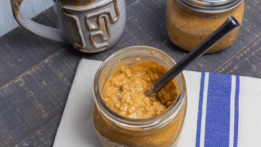 Pureed butternut squash is a fresh alternative to cooking with canned pumpkin, and it is extremely easy to make. After roasting the squash, simply puree in a food processor. If you have extra on hand it freezes well for future use, saving even more time when making these nutritious Fall Harvest Overnight Oats.