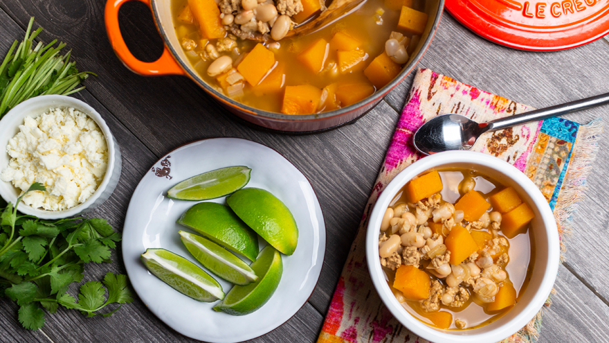 Nothing says fall like a bowl of chili, especially one with seasonal squash. Fresh pumpkin or acorn squash would also work well in this recipe. In less than 30 minutes, you can serve a warm bowl of comfort food to your family. Leftovers taste just as good, if not better. If you do not eat all the leftovers, this meal freezes well in a tightly sealed container or zip-top bag.
